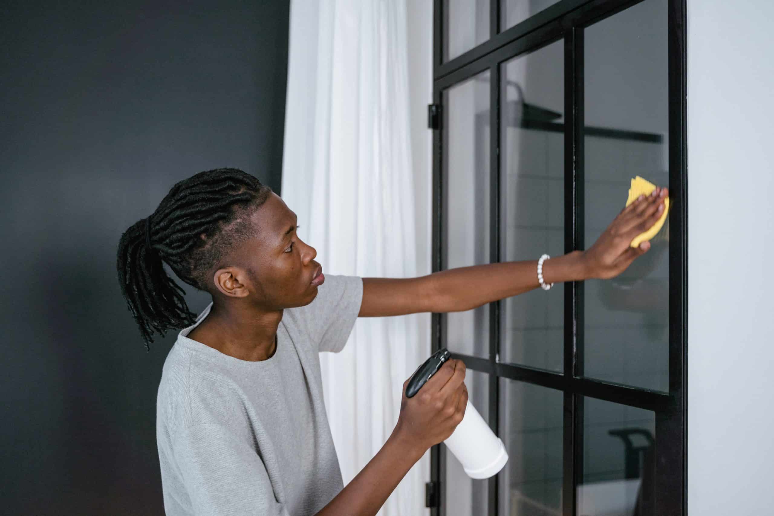 For window sills, stair railings, and other hard surfaces in your home, you can keep them clean with disinfecting wipes or an all-purpose cleaner and a rag.