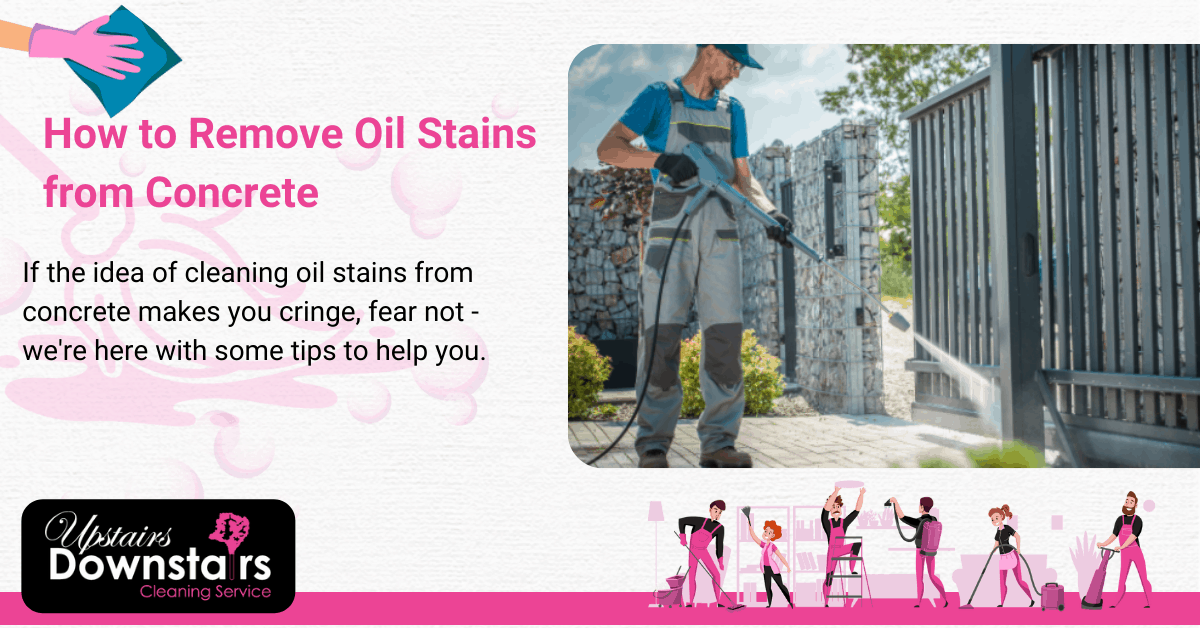 There are several ways to approach removing oil stains from concrete surfaces – and one of them is sure to work for you. However, if these cleaning methods don’t work for you, call in a professional like Upstairs Downstairs Cleaning Service who’s experienced with oil stains on concrete.