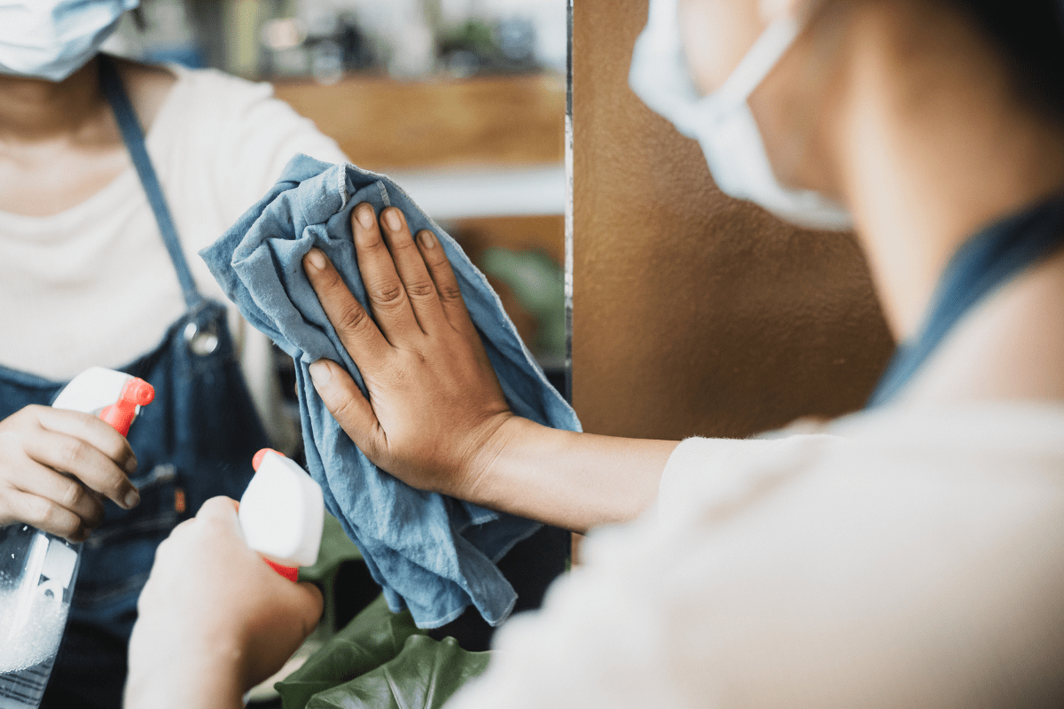 Before you start spraying product on your mirror, expecting to wipe it clean, you’ll want to go over it with a dry cloth to remove any excess dust or moisture clinging on. Sprays and liquid cleaners tend to cause dust particles to stick, which can actually make cleaning your mirror harder.